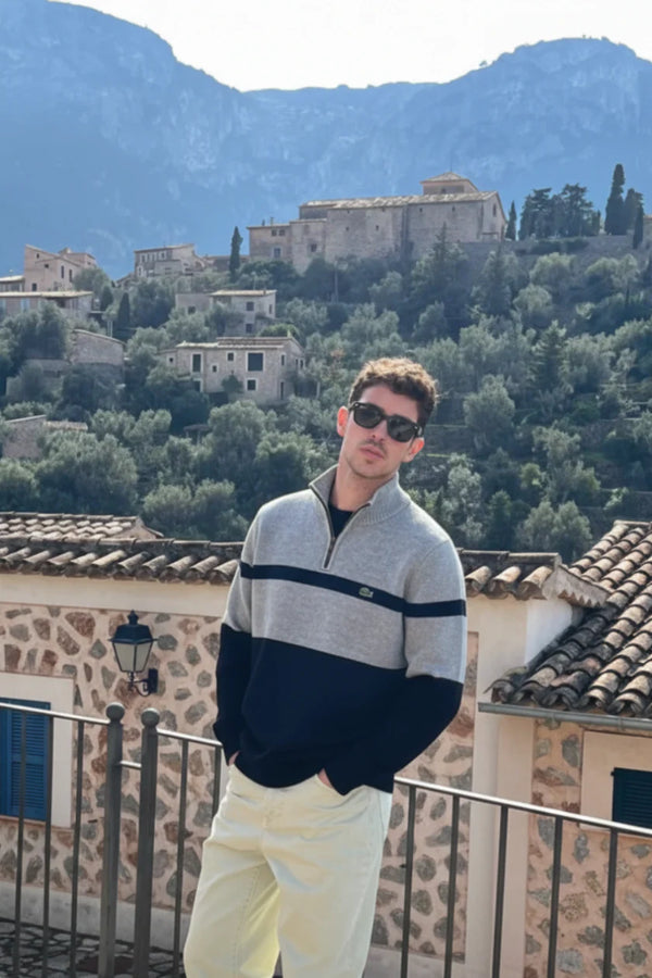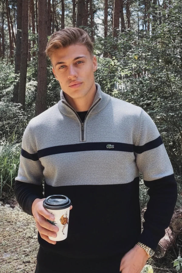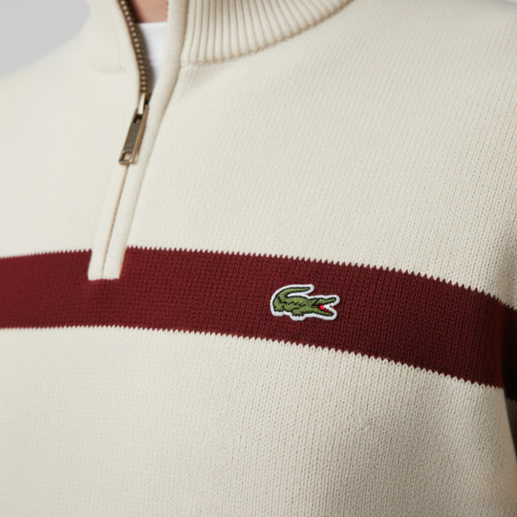 Rediscover the essence of casual sophistication with this Lacoste half-zip sweater — where refined style meets functional design. Crafted for the modern man who values quality and authenticity, it features a luxurious cotton blend that feels smooth on the skin while maintaining its shape wear after wear. The bold navy, cream, and burgundy stripes exude understated confidence, making it the perfect companion for both smart and relaxed occasions. Whether layered over a shirt or worn on its own, this piece effortlessly elevates your look with timeless French elegance.